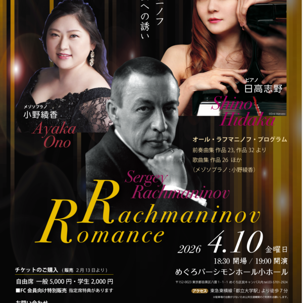 4月10日 ラフマニノフ・ストーリーズvol.5 「ラフマニノフ 歌曲への誘い」 ピアノ:日高志野、メゾソプラノ:小野綾香 めぐろパーシモンホール小ホール